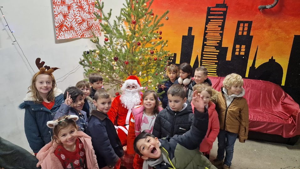 Un lycéen a bien voulu incarner le Père Noël pour les enfants de l’école maternelle pour la fête de Noël.